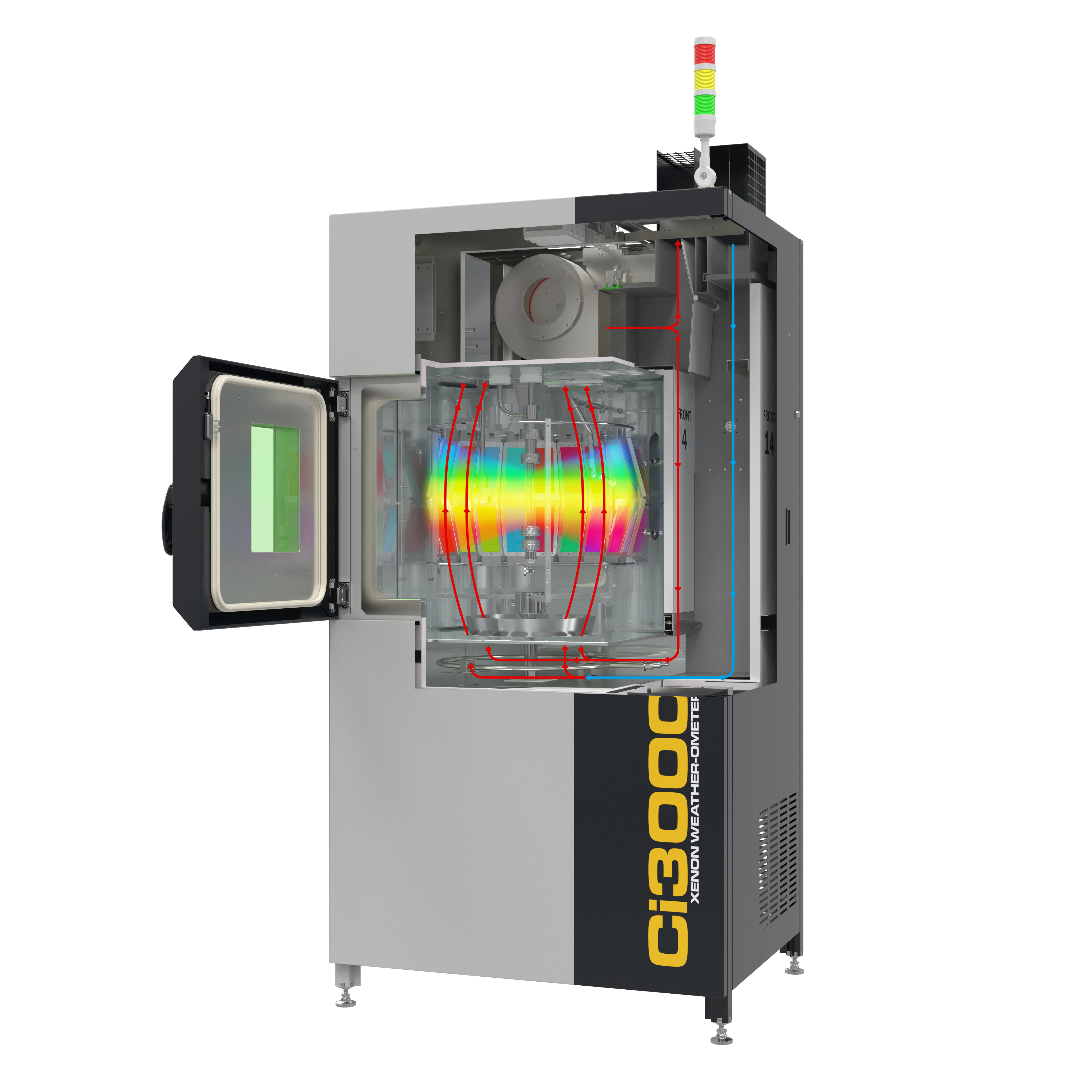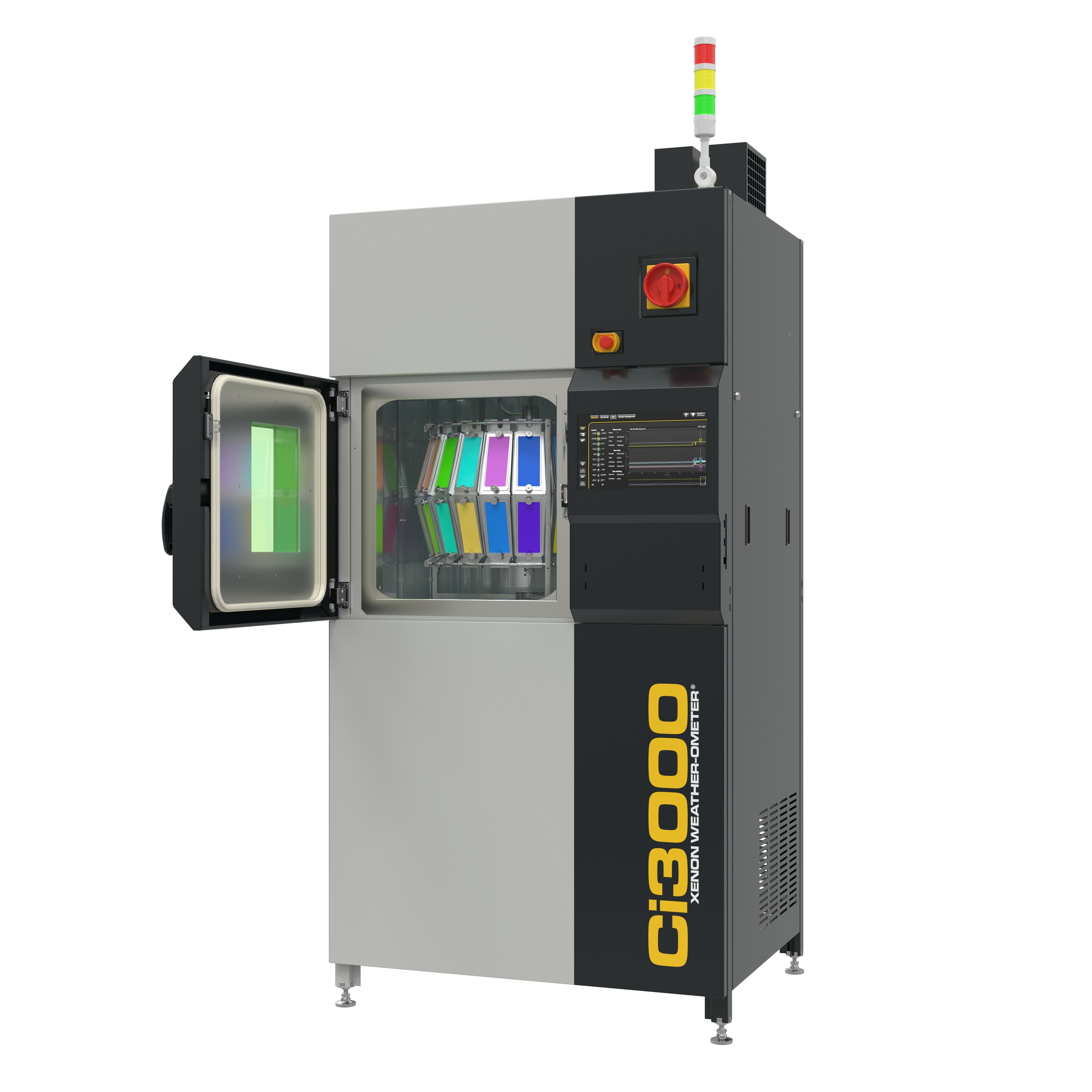 Weather-Ometer a Fade-Ometer Ci3000+ so svojimi pokročilými digitálnymi riadiacimi systémami predstavujú monumentálne úspechy v aplikácii digitálnych a optických technológií v ľahko použiteľných laboratórnych prístrojoch na meranie počasia. Séria 3000 je schválená mnohými výrobcami OEM v odvetví textilu, farieb a náterov a plastov ako exkluzívna platforma na poskytovanie presných, reprodukovateľných a opakovateľných výsledkov na predpovedanie životnosti. Séria 3000 bola certifikovaná v súlade s CE, UL, CSA, ISO a EN. Kľúčové vlastnosti tohto prístroja zahŕňajú: otočný stojan na vzorky na maximalizáciu jednotnosti všetkých vzoriek; na mieru navrhnuté dýzy na poskytovanie rovnomerného rozprašovania vzoriek a stojanov; ASTM Black Panel Thermometer alebo ISO/DIN Black Standard Thermometer na kontrolu a monitorovanie teploty na úrovni vzorky, aby sa zabezpečila opakovateľnosť testu.